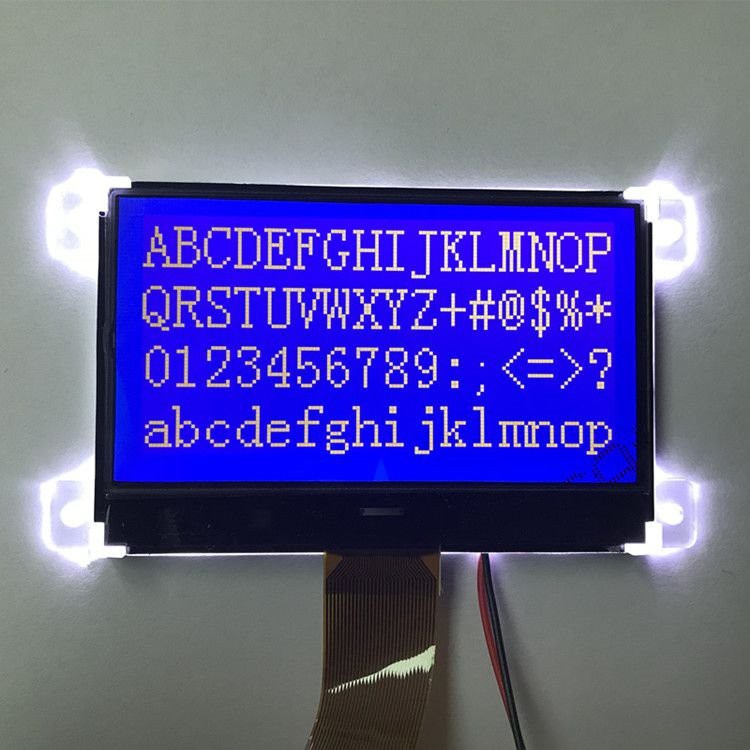 LCD-skærmmodulet til fjernsamtaleanlæg er den 2,8 tommer blå grafiske lcd med 128x64 pixels, hvidt tegn på blå baggrund, STN, Transmissive LCD, ST7565R controller, 4 stk hvid led baggrundsbelysning, FPC stik, chip på glasset.